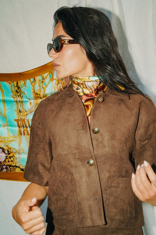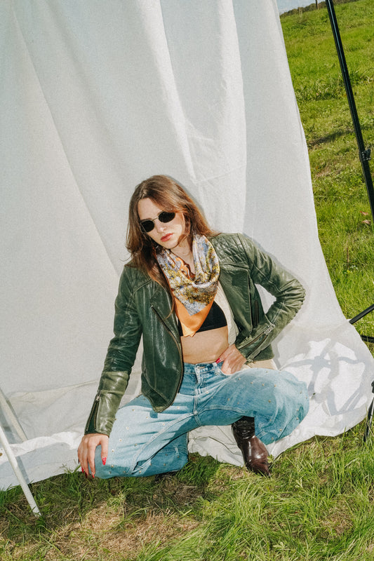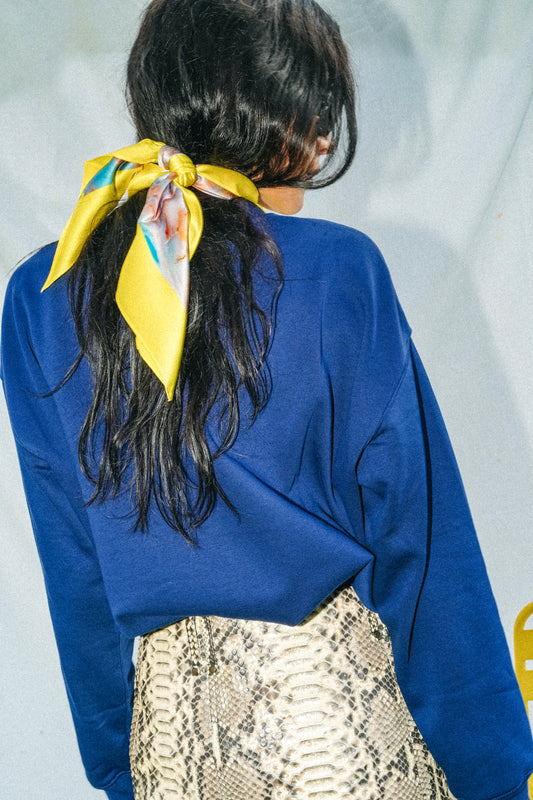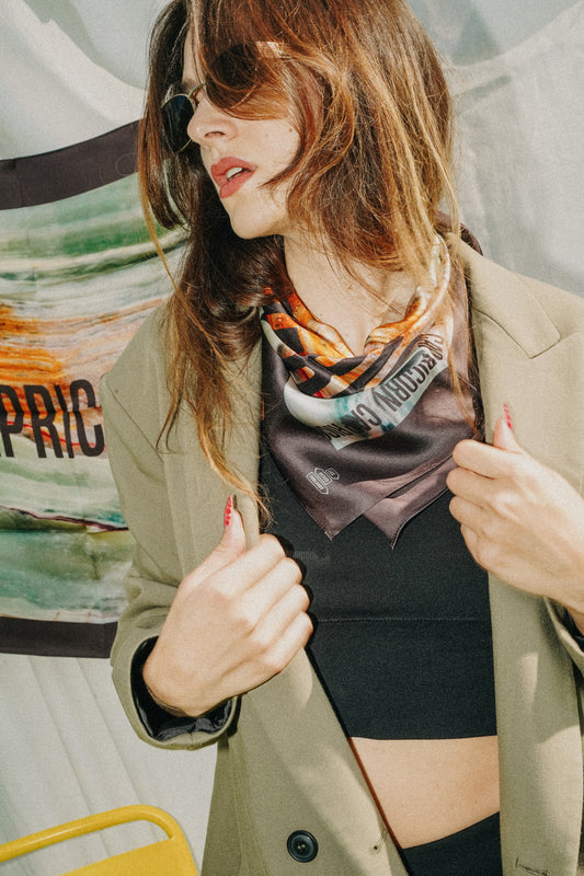 Chaque foulard capture l'énergie de votre signe, avec sa pierre énergétique imprimée sur notre soie iconique et lumineuse. Douze foulards, douze énergies uniques.