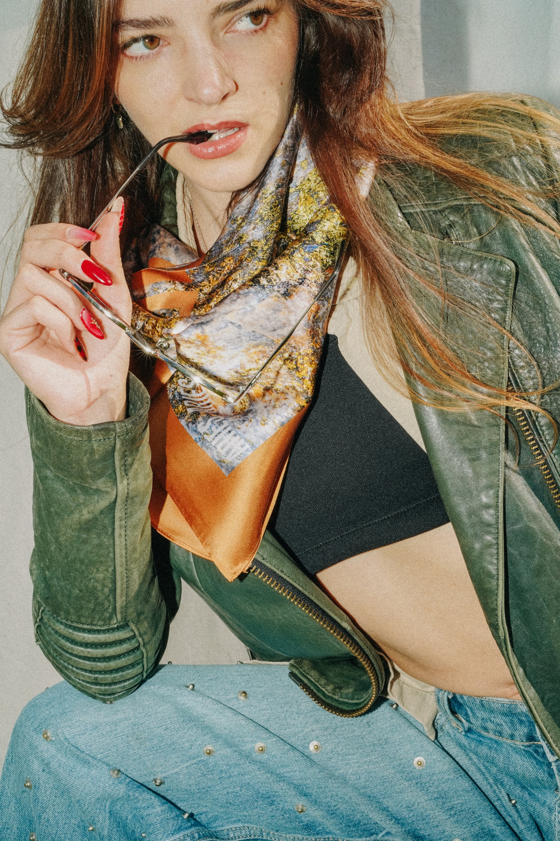 Imprimée sur notre soie iconique, elle fait de ton foulard ton power boost — ton talisman de confiance.