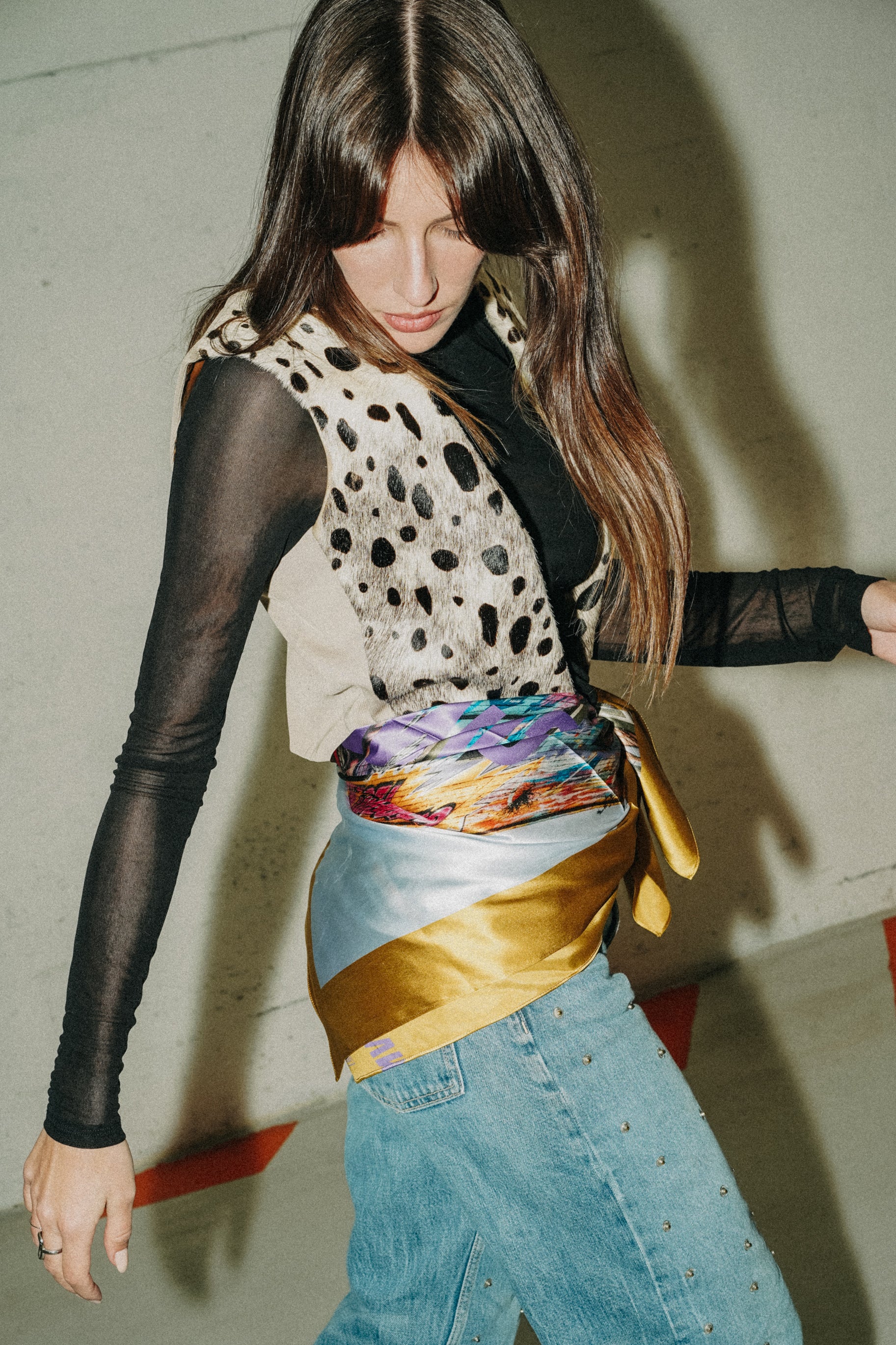 Un carré 100% soie de 90x90cm ultra graphique, où street art, briques rouges et esprit rock se rencontrent pour créer une pièce forte et profondément inspirante.