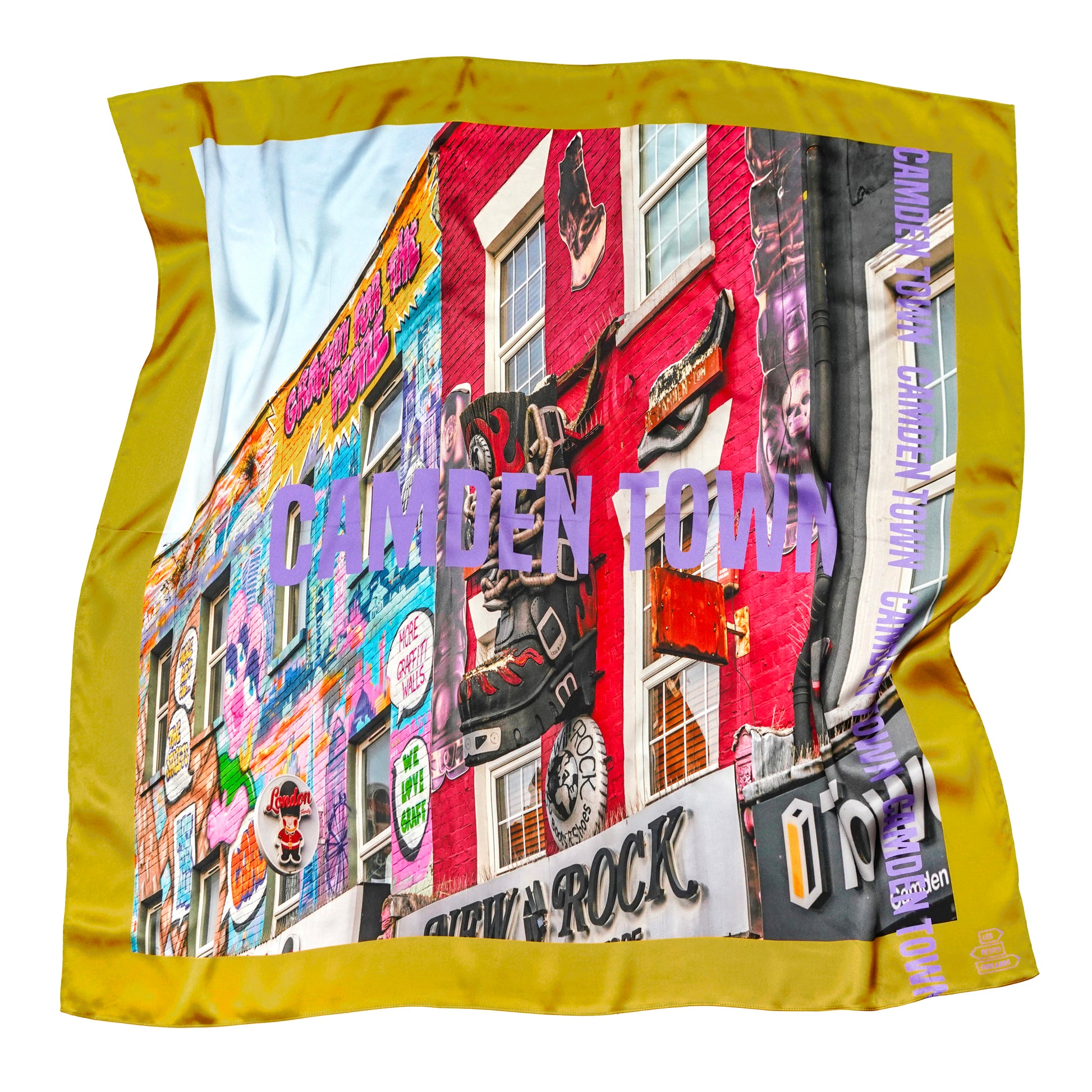 Plongez au cœur du Londres alternatif avec le foulard Camden Town, une ode vibrante à l’un des quartiers les plus libres, créatifs et rebelles du monde.