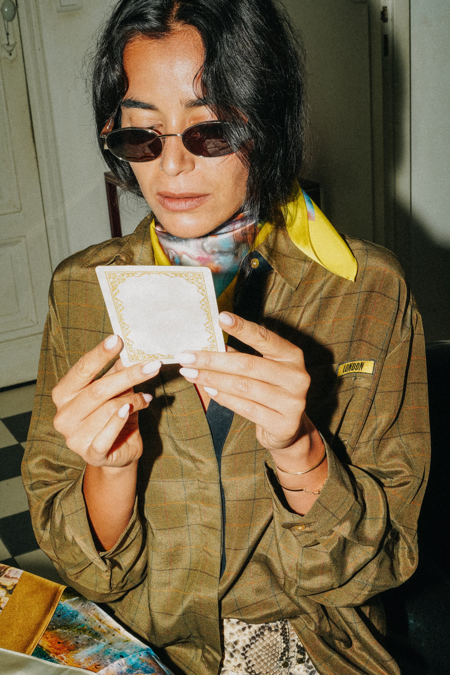 Imprimée sur la soie, elle transforme ton foulard en talisman d’inspiration.